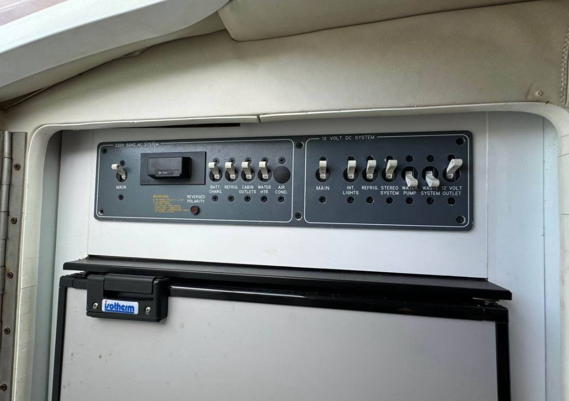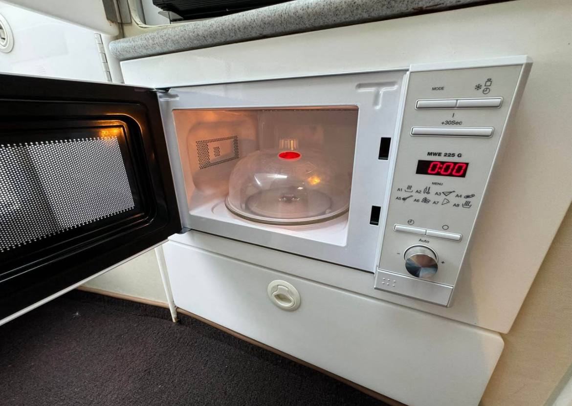 Inside and out she’s seriously well-equipped for real use: microwave, refrigerator, dedicated toilet room with shower, comfortable double bed, gas burner for quick meals, and a solid navigation system to keep you safe and on course. The cockpit and cabin layout make her perfect for entertaining guests or just relaxing with family – plenty of space to stretch out, cook, sleep, and enjoy the water without feeling cramped.