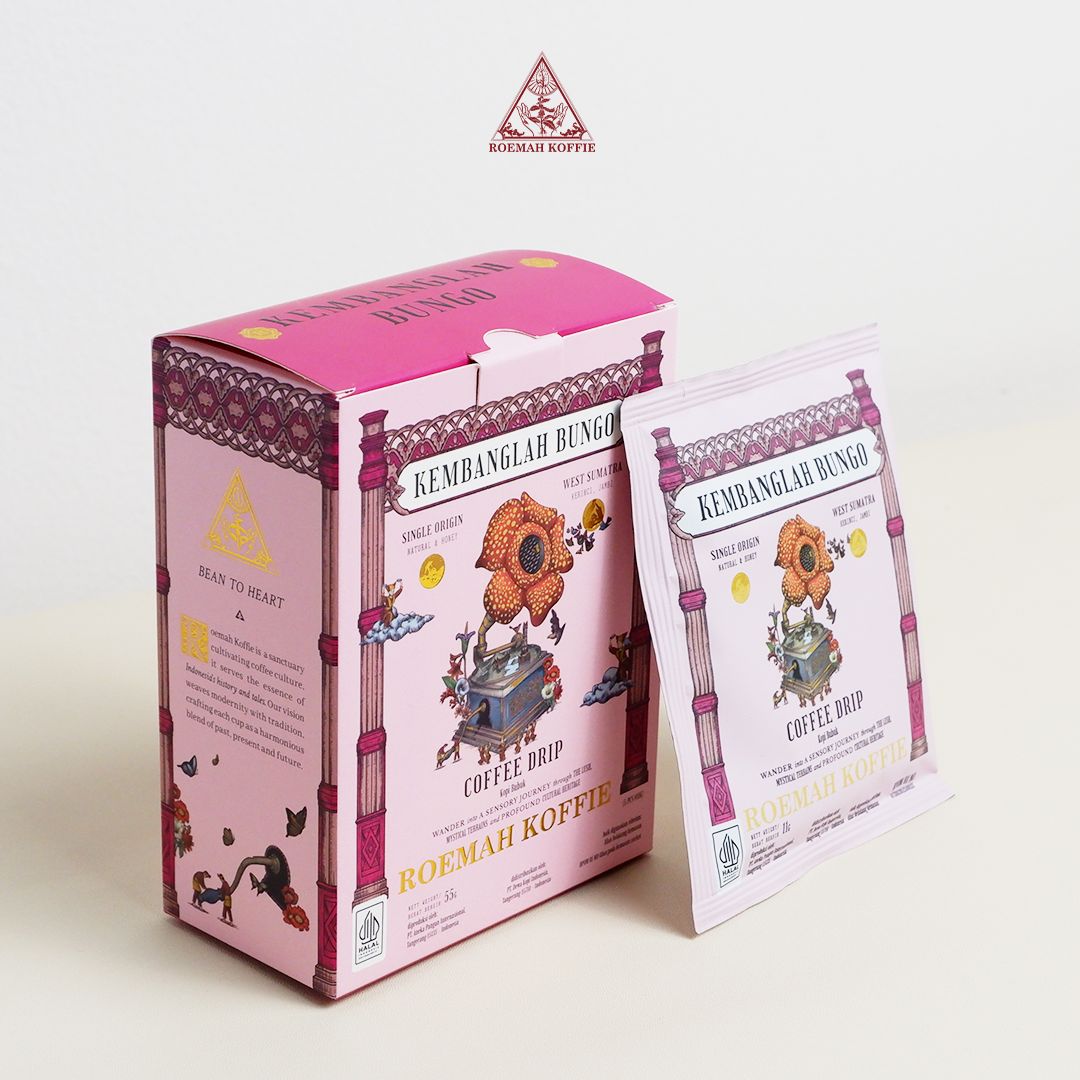 Kembanglah BungoWest SumatraFloral, vibrant notes with artistic flairCoffee drip bags, gift boxes5g single servingsQuick retail, travel retail